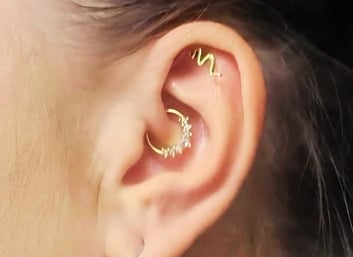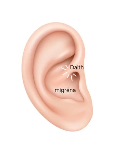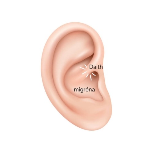 Na základe poznatkov modernej aurikuloterapie - ušnej akupunktúry sa vykonáva aplikácia piercingu proti migréne a iným bolestiam hlavy a to stimuláciou bodu chrupavky ucha piercingom. Bod Daith sa nachádza v blízkosti blúdivého nervu a jeho stimuláciou môžeme dosiahnuť až úplné vymiznutie bolestí hlavy rôzneho pôvodu a migrenózne bolesti. Piercing nie je liek, pomáha však, aby sa človek, ktorý trpí ukrutnými bolesťami hlavy a migrénami cítil lepšie, mohol žiť plnohodnotný život bez bolestí. Štúdia bola vykonaná približne na 70 000 respondentoch. V našom štúdiu aplikujeme akupiercing tretí rok a máme obrovský počet žien a mužov, ktorým tento malý šperk pomohol. Aplikuje sa na presne vymeraný bod.